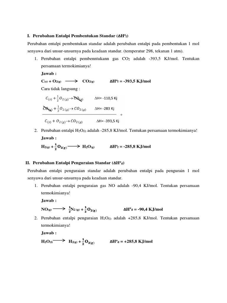 I. Perubahan Entalpi Pembentukan Standar ( H )