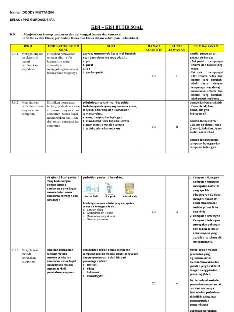 Kisi – Kisi Butir Soal: Nama: Doddy Muttaqin Kelas: Ppg Gurdasus Ipa