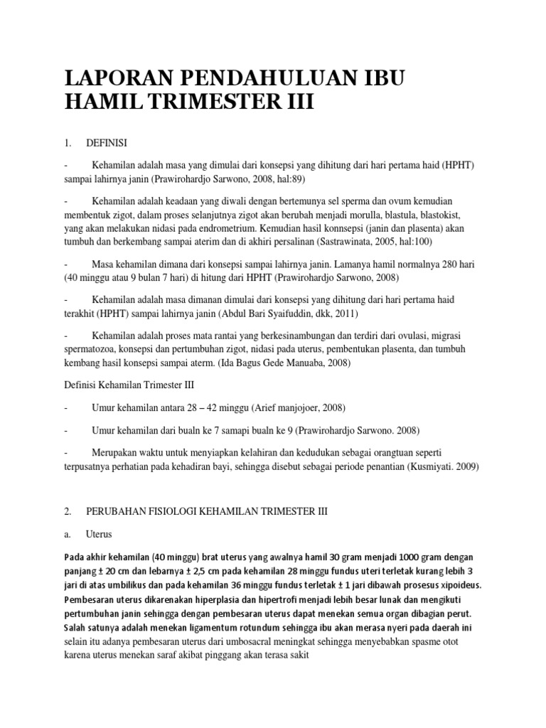 DOC) LAPORAN PENDAHULUAN KEHAMILAN TRIMESTER III | kadek titindewi - Academia.edu