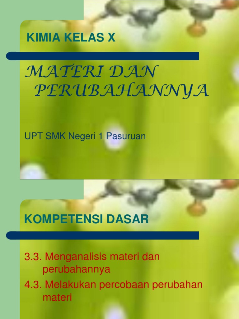 Kimia Kelas X: Materi Dan Perubahannya