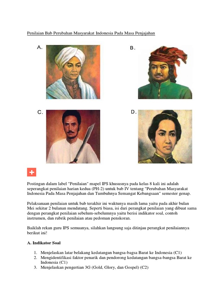 Penilaian Harian Bab Perubahan Masyarakat Indonesia Pada Masa Penjajahan