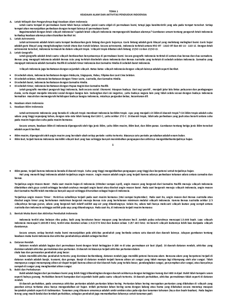 Tema 1 Keadaan Alam Dan Aktivitas Penduduk Indoensia A. Letak …