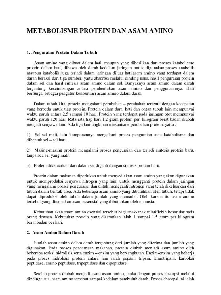 DOC) Metabolisme Protein dalam Tubuh | ALFIA HUSNA - Academia.edu