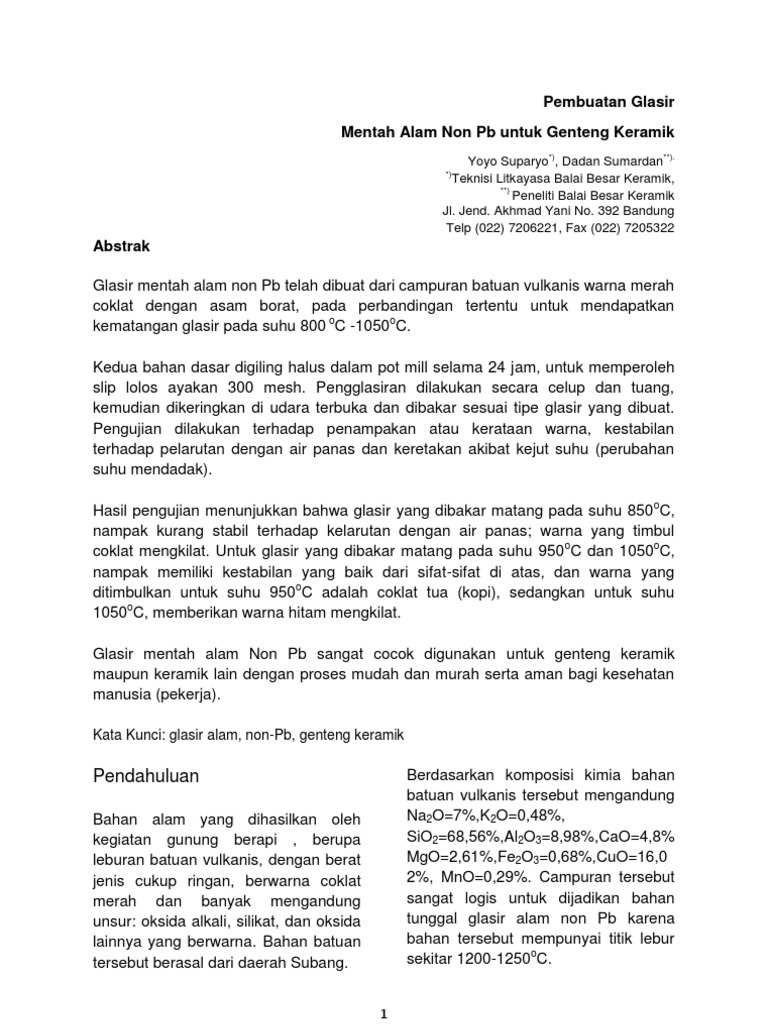 Pembuatan Glasir Mentah Non Pb Untuk Genteng Keramik