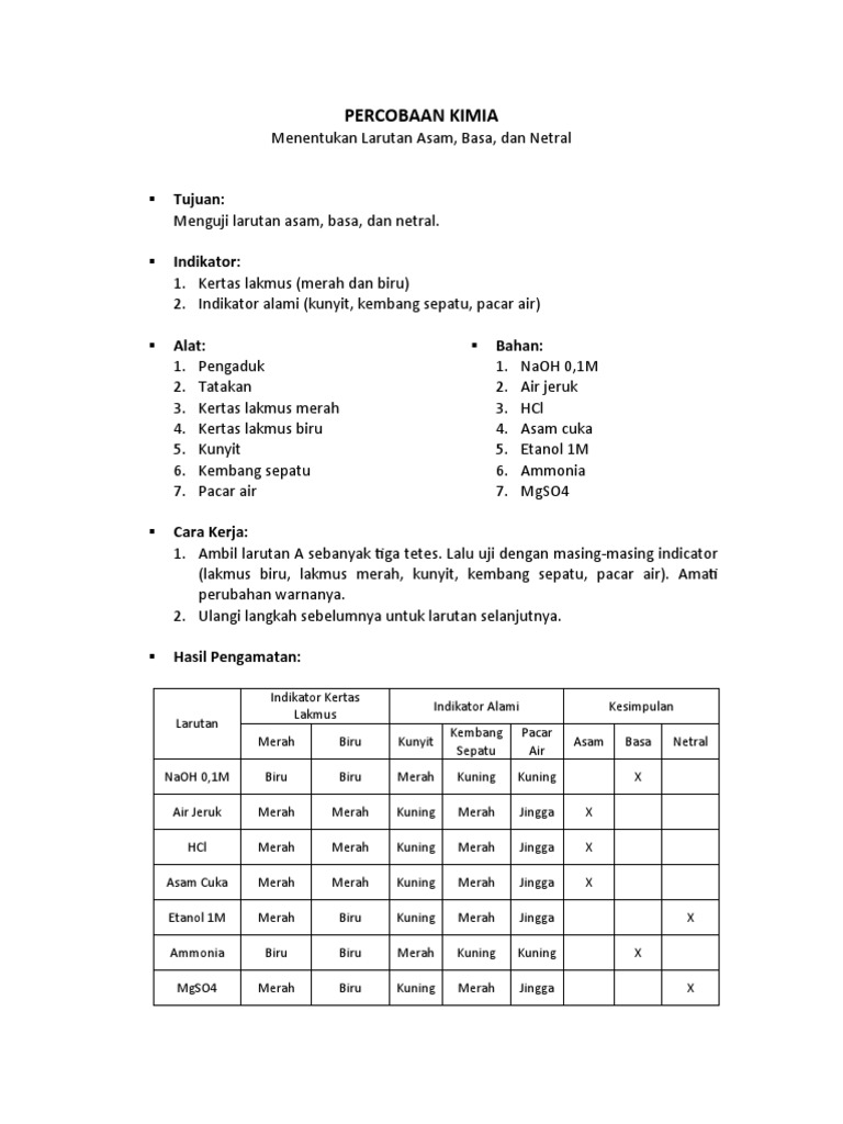 membuat definisi indikator asam basa dari hasil percobaan | Lebih …
