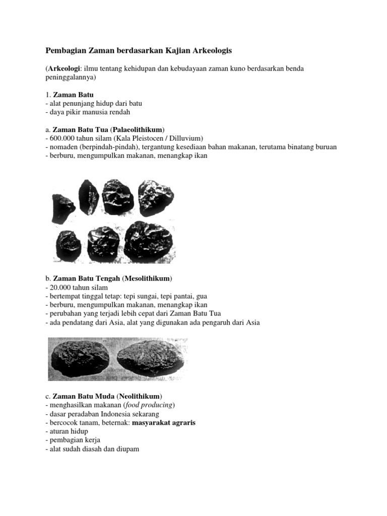 Zaman Batu Paleolitikum Mesolitikum Neolitikum Deskripsi Perubahan