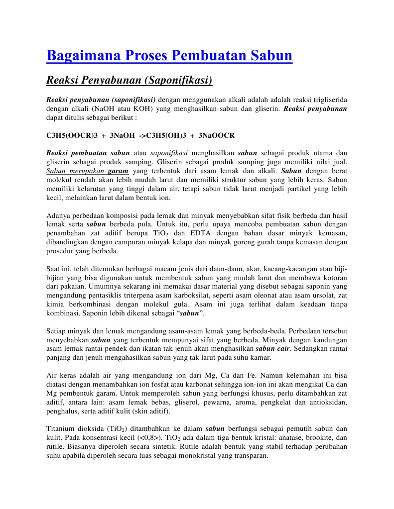 Reaksi Kimia Proses Pembuatan Sabun Keras (Kimia) | Usaha321.net