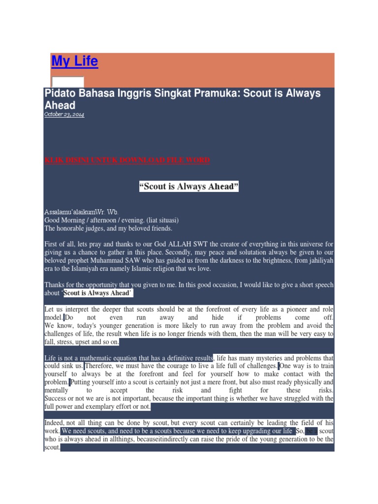My Life: Pidato Bahasa Inggris Singkat Pramuka: Scout is Always Ahead | Abrahamic Religions | Monotheistic Religions | Free 30-day Trial | Scribd