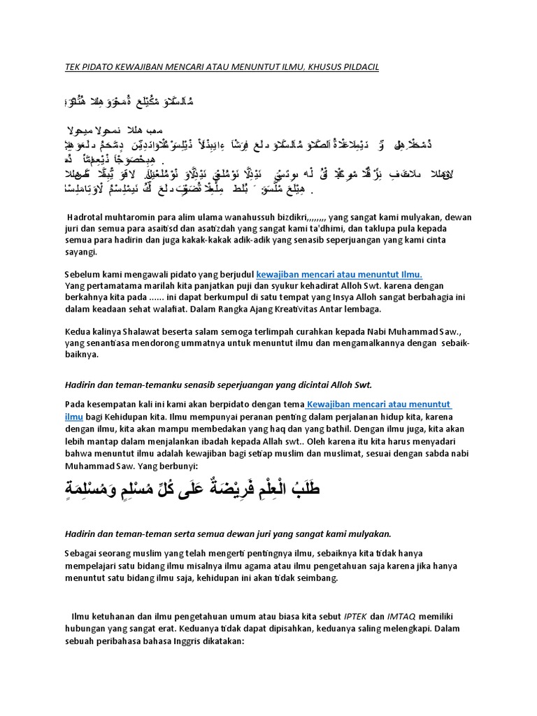 Tek Pidato Kewajiban Mencari Atau Menuntut Ilmu, Khusus Pildacil
