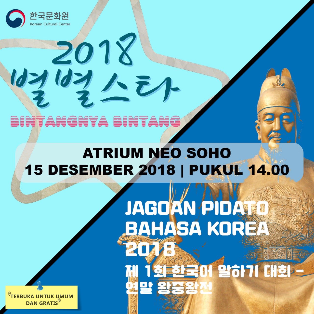 Korean Cultural Center Indonesia Twitter: “, Para Finalis “Jagoan Pidato Bahasa Korea 2018” dan “Bintangnya Bintang 2018” telah diumumkan. KCC mengundang kamu untuk hadir, menyaksikan, dan memberikan dukungan kepada para finalis