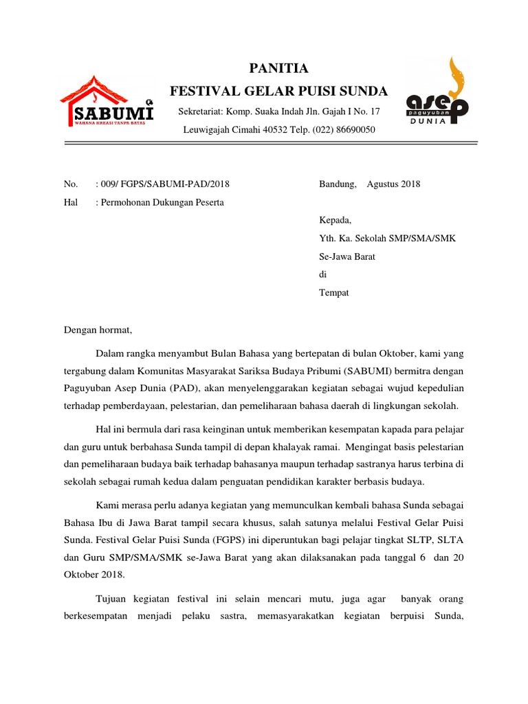 Contoh Surat Resmi Bahasa Sunda Tentang Kerja Bakti Atau Gotong Royong