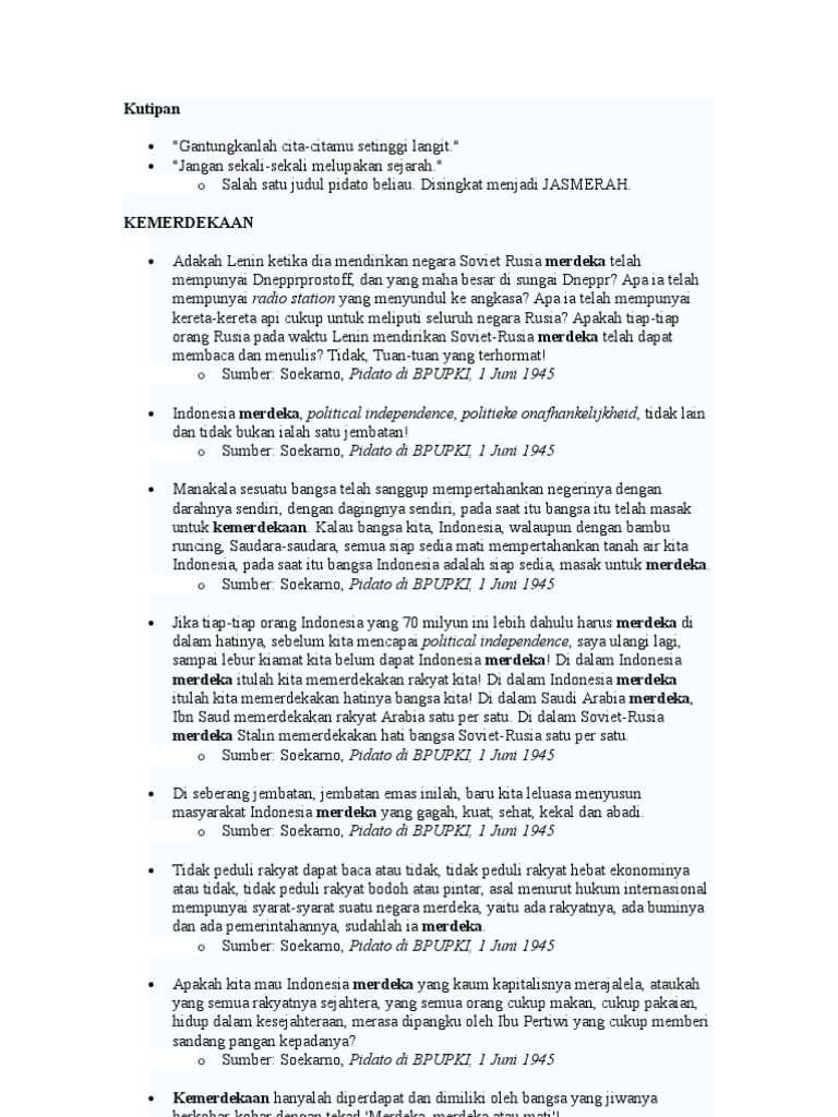 Naskah Pidato Soekarno 1 Juni 1945 - Tribunnewswiki.com Mobile