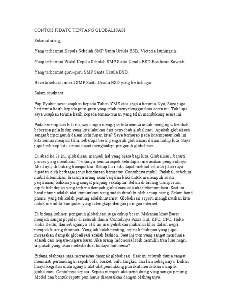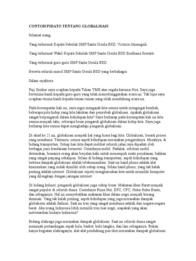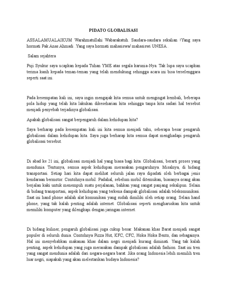 DOC) Contoh Naskah Pidato Tentang Globalisasi | Wahyu Widodo - Academia.edu