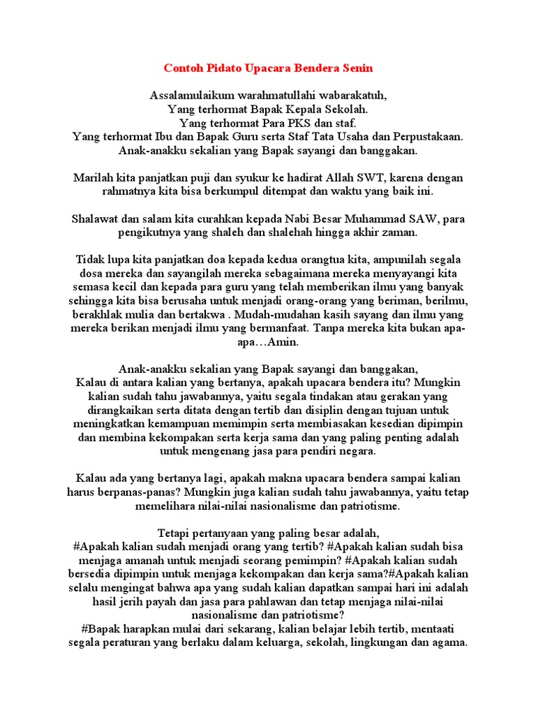 Contoh Pidato Pembina Upacara Hari Senin Sd - Guru Ilmu Sosial