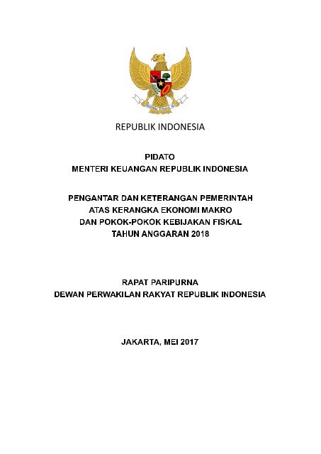 PIDATO MENTERI KEUANGAN REPUBLIK INDONESIA PENGANTAR DAN KETERANGAN PEMERINTAH ATAS KERANGKA EKONOMI MAKRO DAN POKOK-POKOK KEBIJ