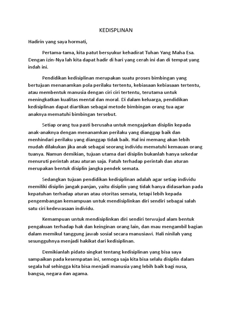 DOC) Contoh Pidato : Kedisiplinan | fergya sugandhi - Academia.edu