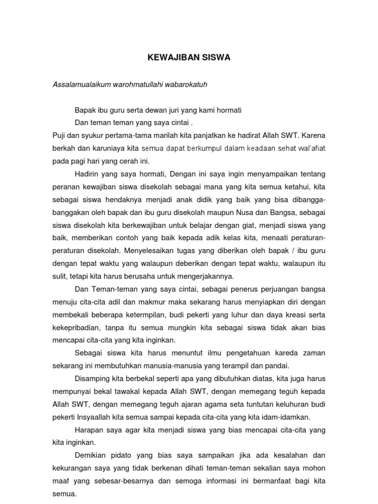 Pidato Isi Kewajiban Siswa