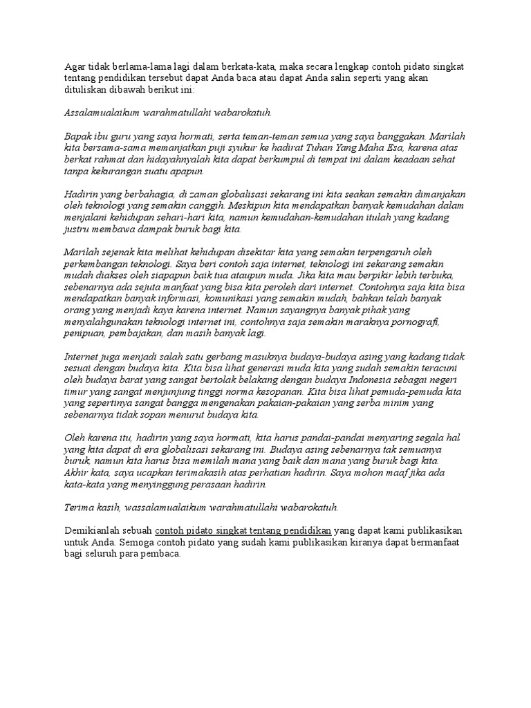 contoh soal dan contoh pidato lengkap : Contoh Pidato Singkat Tentang Pendidikan Di Era Globalisasi