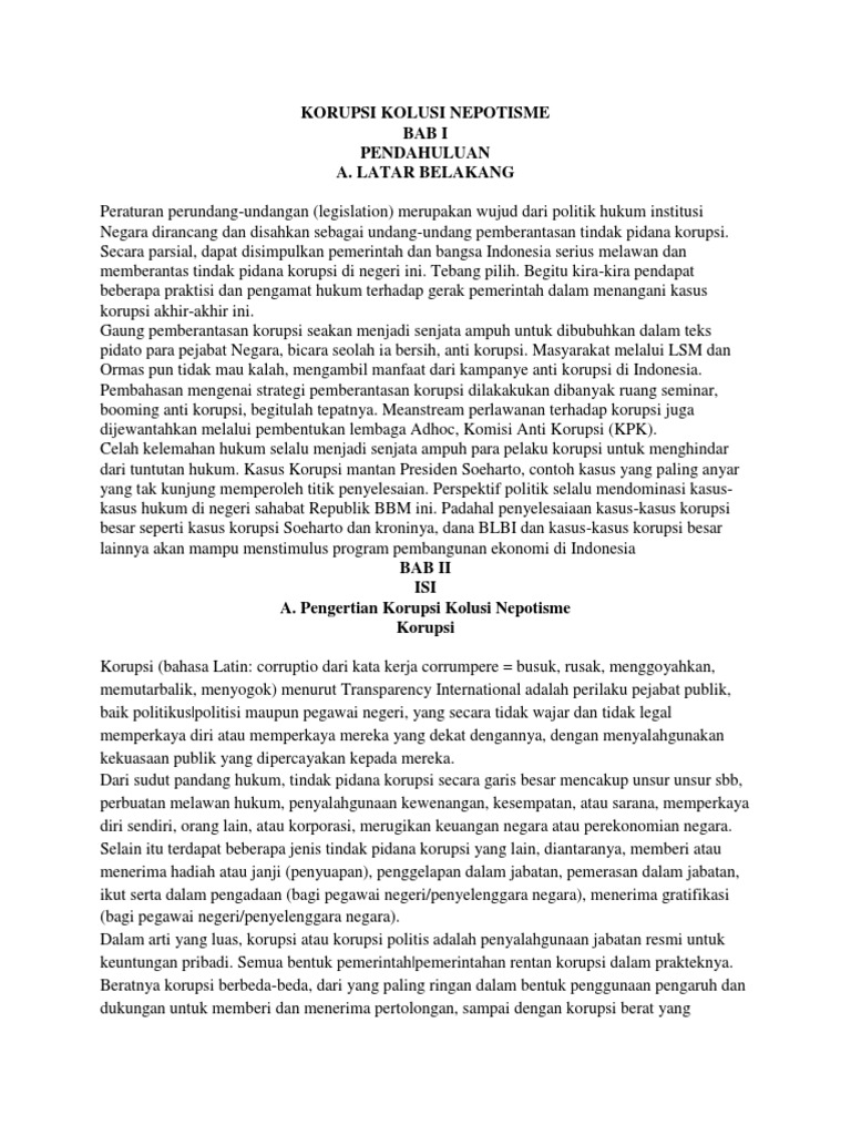 Pidato Tentang Korupsi Kolusi Dan Nepotisme