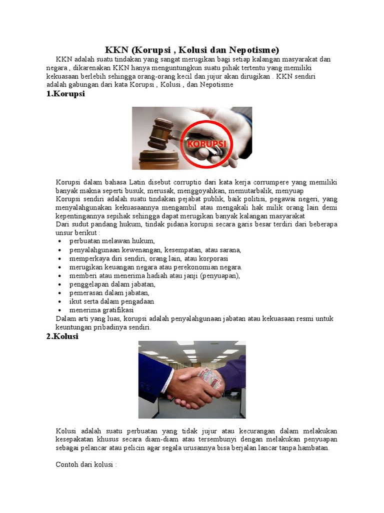 KKN (Korupsi, Kolusi, Nepotisme) merupakan Benalu Sosial - Kompasiana.com