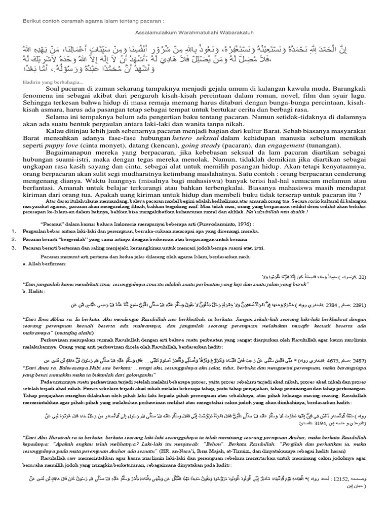 Contoh Ceramah tentang Pacaran Menurut Pandangan Islam