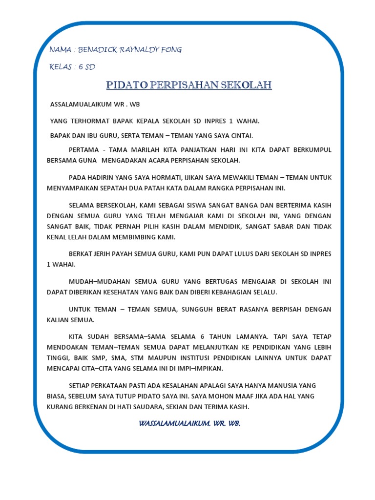PDF) CONTOH PIDATO 51 Pidato Perpisahan SD | Farid Ramlan - Academia.edu