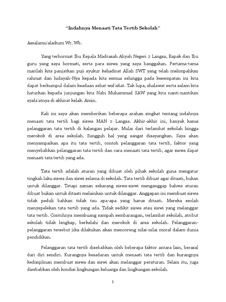 Contoh Pidato Tata Tertib Sekolah | Teori Sekol…