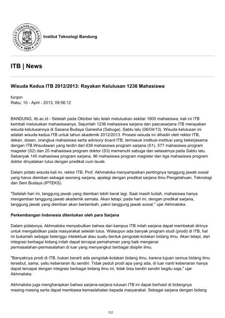 Pidato Rektor pada Wisuda Juli ITB 2016: Kelulusan sebagai Langkah Awal Kedaulatan Indonesia Mendatang - Institut Teknologi Bandung