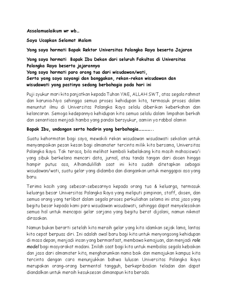 PDF) PIDATO PERWAKILAN WISUDAWAN PADA WISUDA VI IAIN SALATIGA | MK Ridwan - Academia.edu