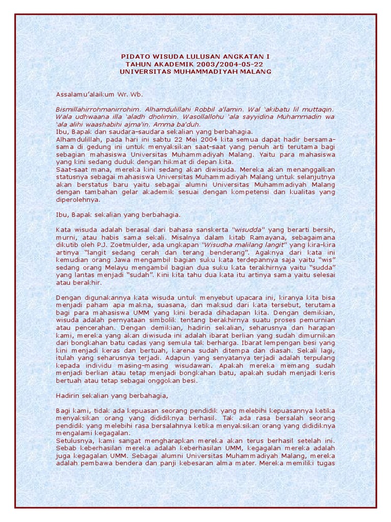 Pidato Wisuda Lulusan Angkatan I TAHUN AKADEMIK 2003/2004-05-22 Universitas Muhammadiyah Malang