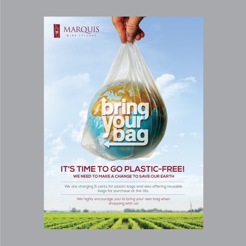Poster calling customers attention for use of reusable bags and charge of 5 cents for plastic ones | Poster contest | 99designs
