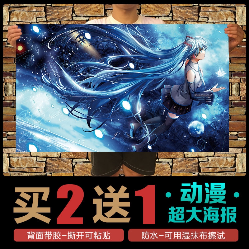Kustom anime poster dinding stiker super besar dua dimensi asrama …