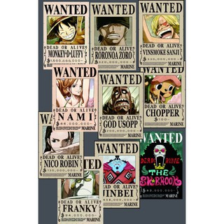 10pcs Poster Wanted One Piece karakter Luffy dan kru Mugiwara,Zoro,Sanji, Jinbei Hadiahnatal 52*36 cm | Shopee Indonesia