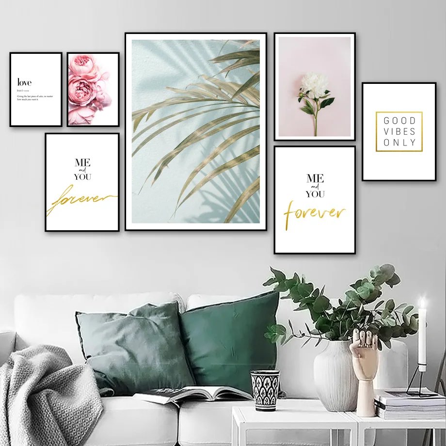 Bunga Mawar Peony Daun Kutipan Cinta Dinding Seni Lukisan Kanvas Nordic Poster dan Cetakan Tanaman Dinding Gambar untuk Ruang Tamu dekorasi|Painting & Calligraphy| - AliExpress