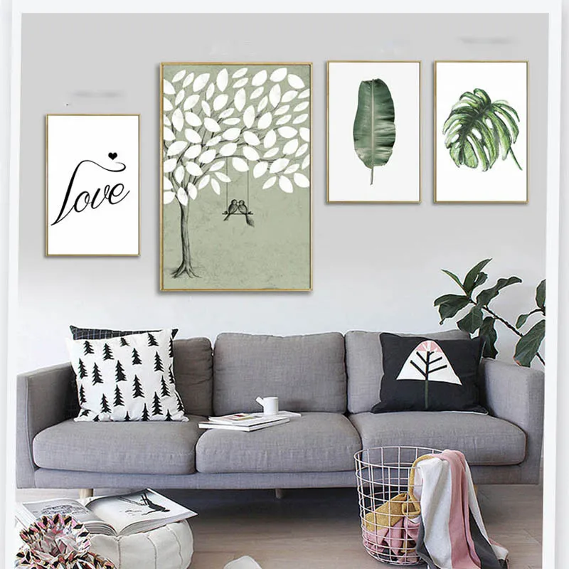 Kustomisasi baru Nordic Tanaman Tropis Daun Jantung Pohon Cinta Poster Sederhana Kreatif Ganda Dinding Dekoratif Lukisan|wall painting|heart treedecorative painting - AliExpress