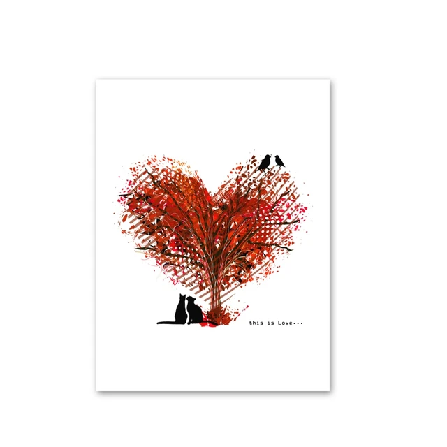 Pohon Seni Cetak Poster Dinding Gambar Cinta Dengan Hati Pohon Kucing Kanvas Lukisan Rumah Ruang Tamu/Kamar Dekorasi Kamar Tidur|wall pictures|art print posterprint poster - AliExpress