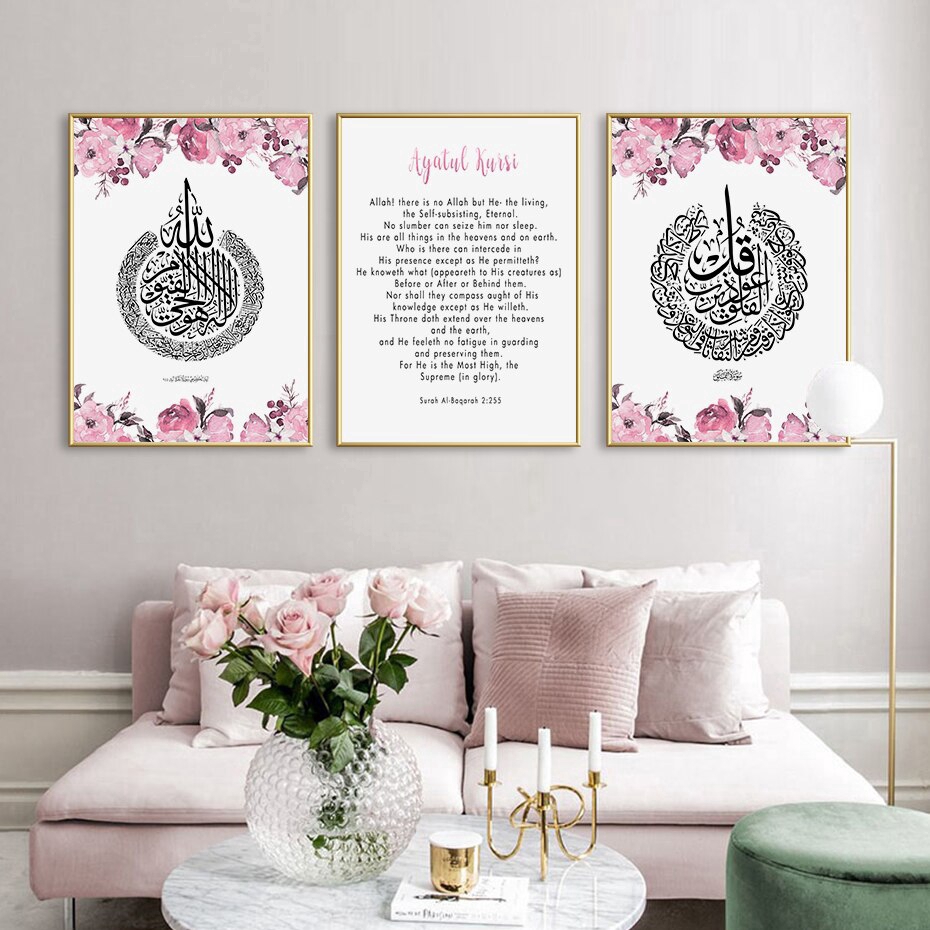 Modern Pink Peony Rose Floral Ayatul Kursi Islamic Poster Canvas …