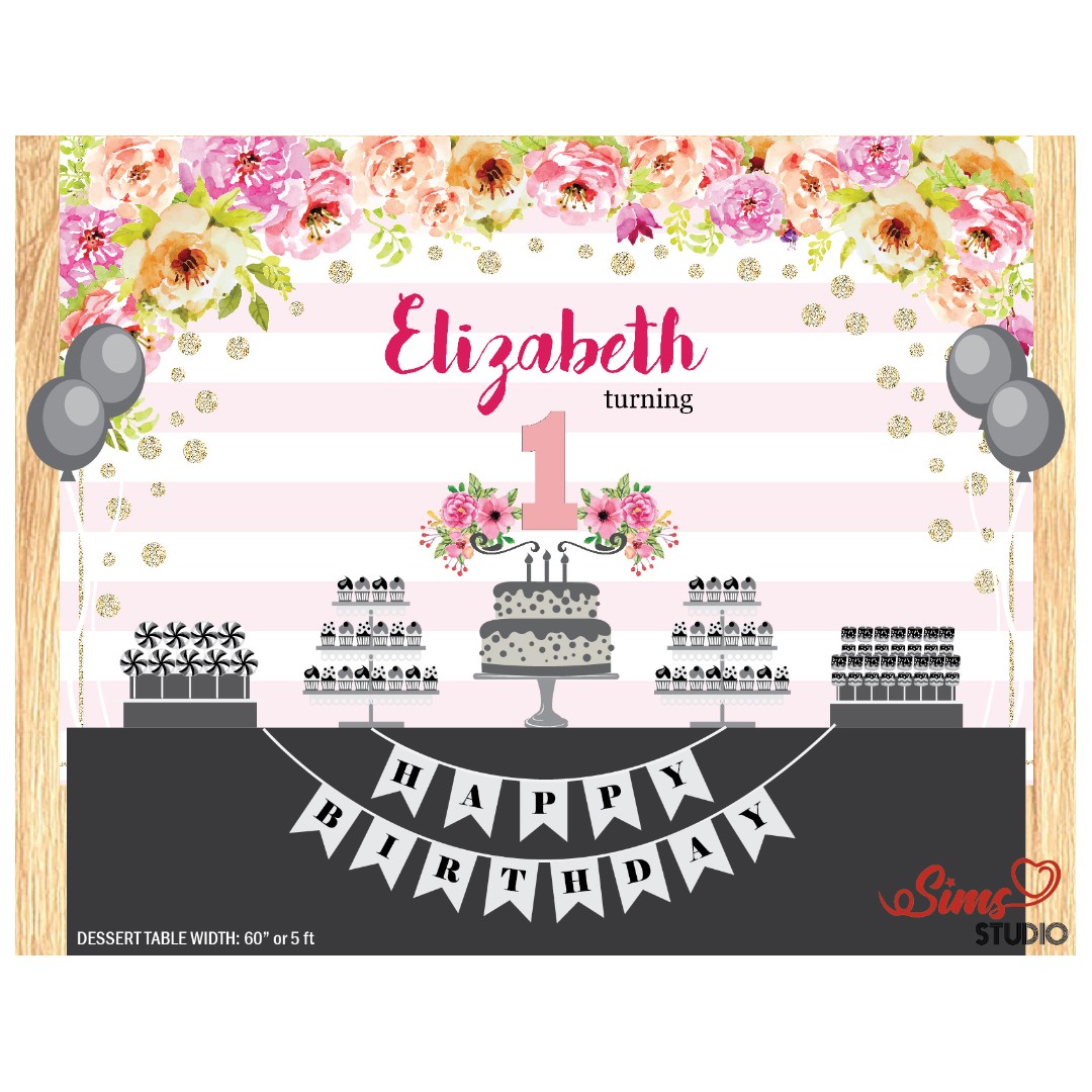 Personalized Pink Boho Flower Theme Birthday Printable Backdrop …