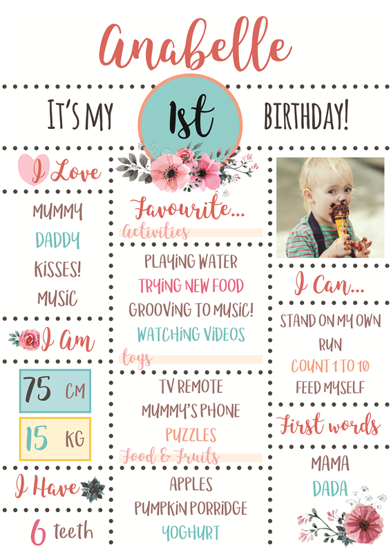 A beatiful floral letter birth poster to celebrate the birth of …