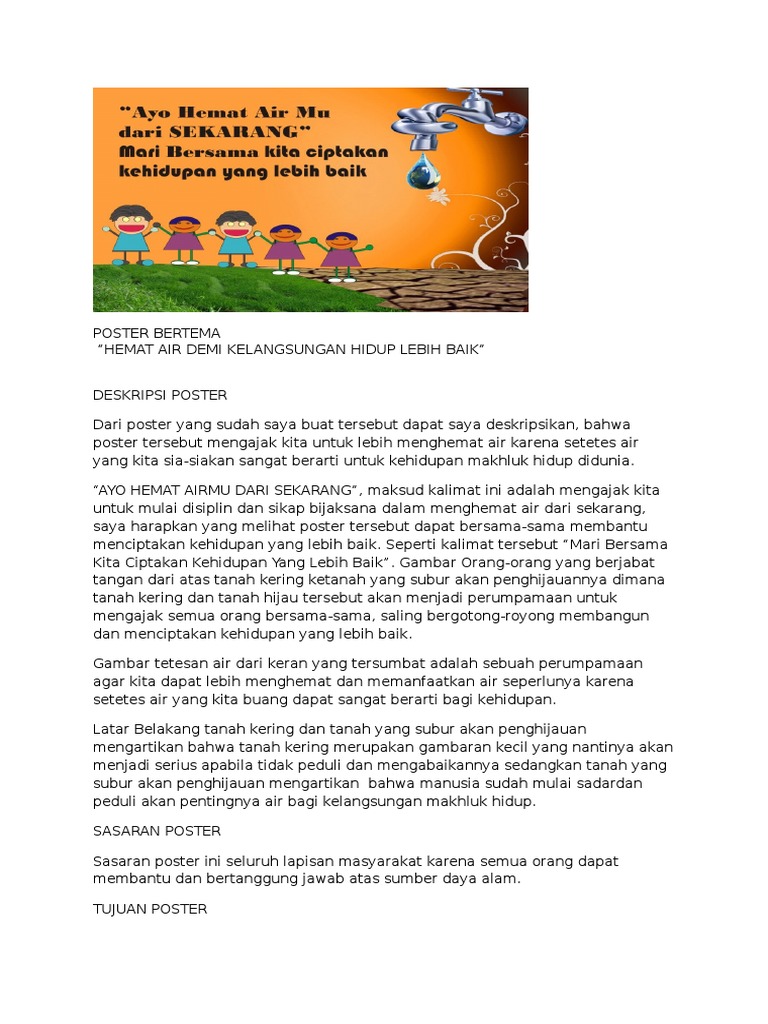Deskripsi Poster Bertema Hemat Air Demi Kelangsungan Hidup Lebih Baik