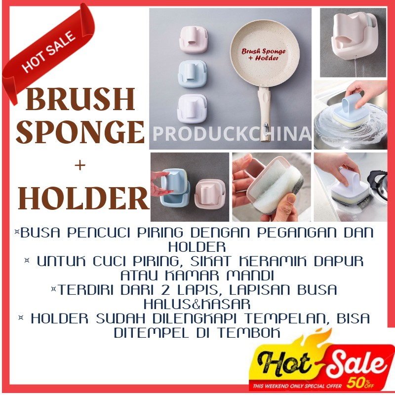 Busa Cuci Piring Brush Sponge&Holder Alat Kebersihan Perabot Dapur Alat Pemeliharaan Rumah PRD0409 | Shopee Indonesia