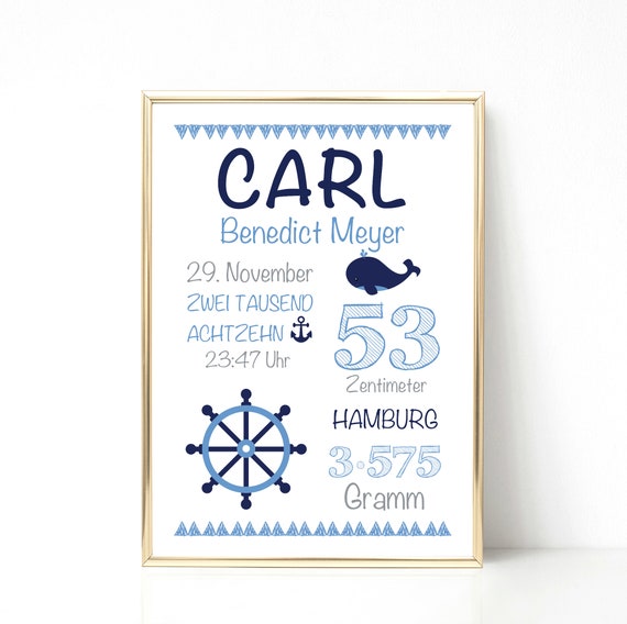 Birth Poster Whale Maritim Blue Nursery Decoration Poster | Etsy