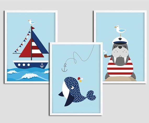 A4 / A3 Poster Nursery maritim Baby Room Pictures for Boys | Etsy