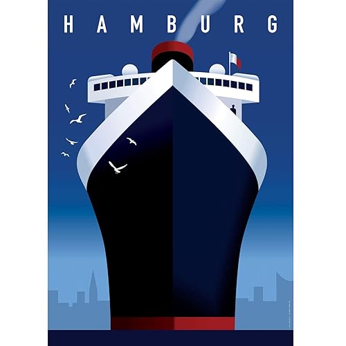 Kunstdruck Poster | Hamburger Hafen | A3 und 50 x 70 cm (ungerahmt) | Maritim, Illustration, Schiff, Hamburg, Vintage, XXL: Amazon.de: Handmade
