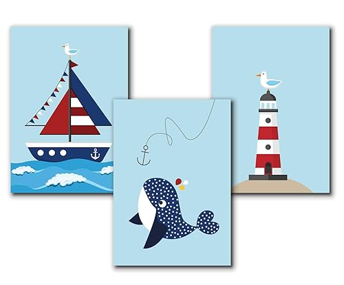 Poster maritim Kinderzimmer | A4 Kinderbilder Kinderzimmer Wal | 3er Set | Kunstdruck Kinderzimmer | ohne Bilderrahmen: Amazon.de: Handmade