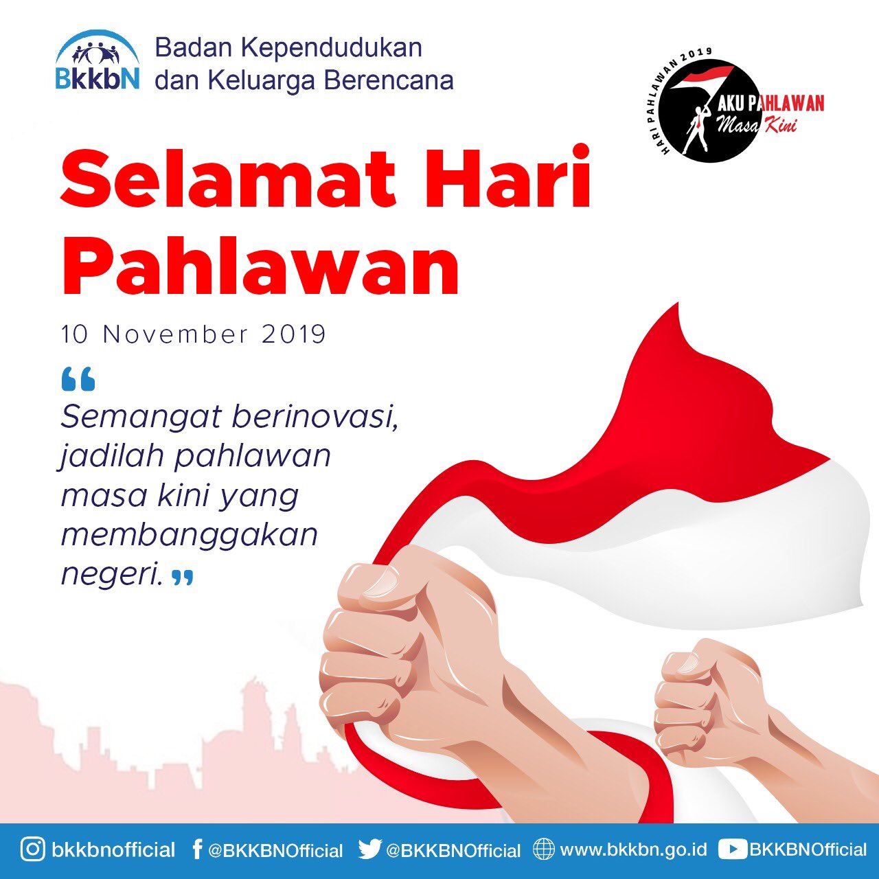 BKKBN : “Selamat Hari Pahlawan 10 November 2019. Semangat berinovasi wahai generasi muda Indonesia, jadilah pahlawan masa kini yang membanggakan negeri. . . #HariPahlawan #BKKBN #KalauTerencanaSemuaLebihMudah #RebrandingBKKBN… https://t.co …