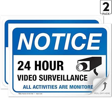 2 Pack) Video Surveillance Vinyl Sign - 7x10” Sticker Self …