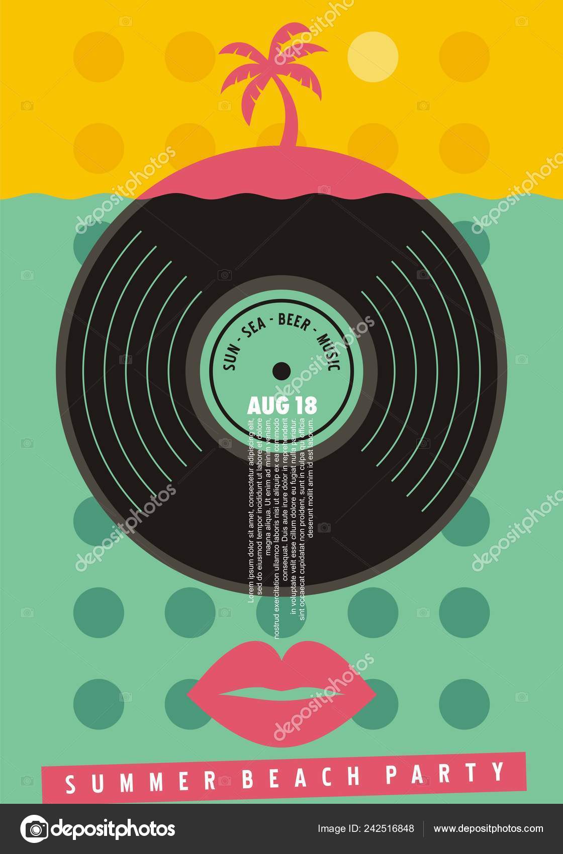 Summer Beach Party Colorful Invitation Design Music Poster Vinyl …