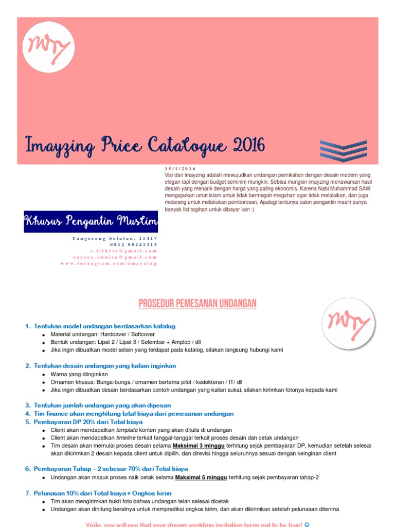 IMAYZING Pricelist 2016 Undangan