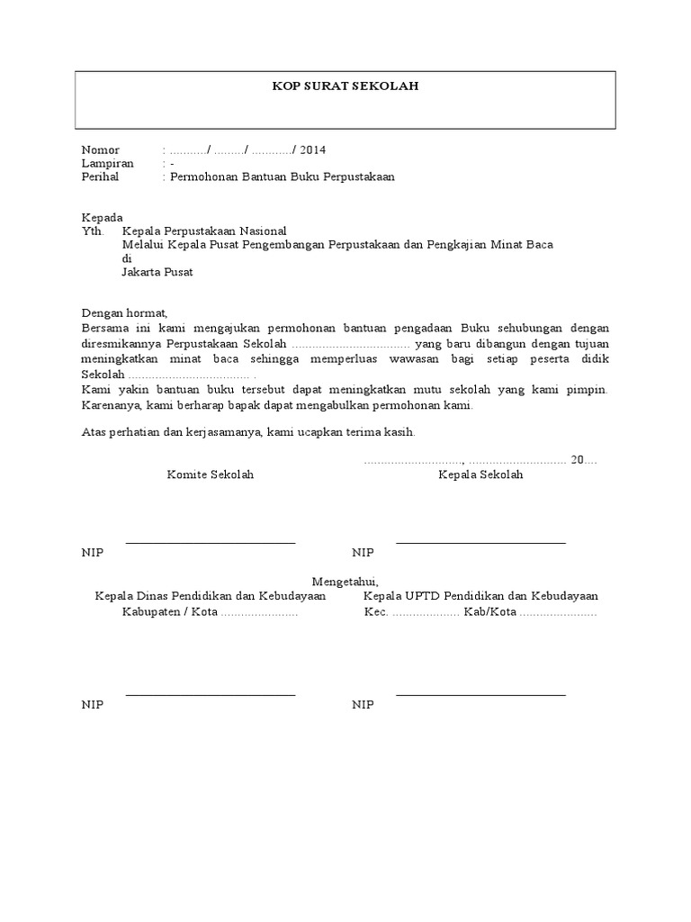 Contoh Surat Permohonan Bantuan Buku Untuk Perpustakaan